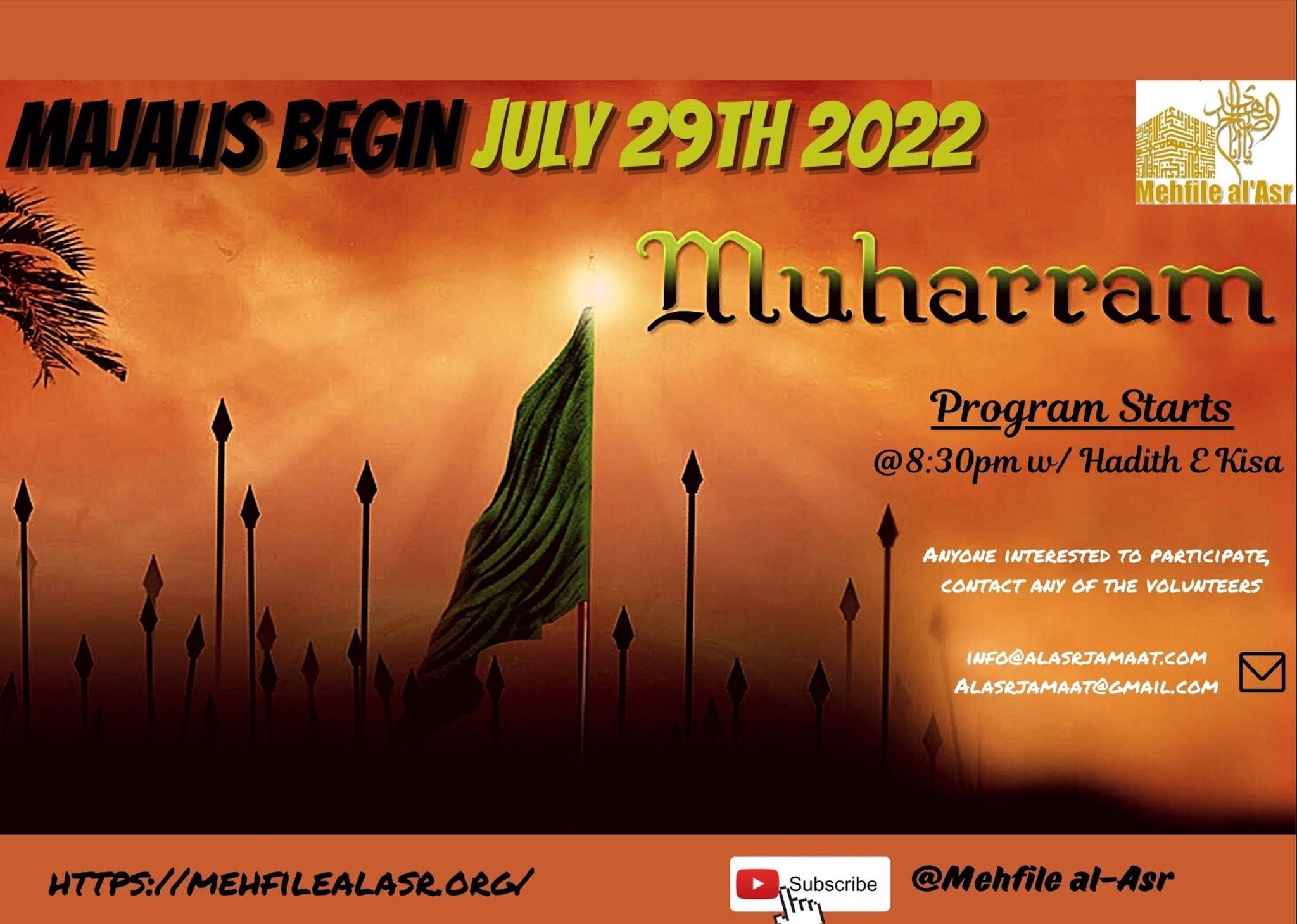 Mehfile al-Asr, aka Al-Asr Jamaat, was founded by Marhoom Taher Mooman in 1994. Since that time it has served as a beacon of knowledge and worship for those who love Prophet Muhammad S.A.W. and his Ahlul Bayt A.S. It has blossomed into a community which fosters Azadaari and improves our readiness for the return of our living Imam Mehdi A.S.